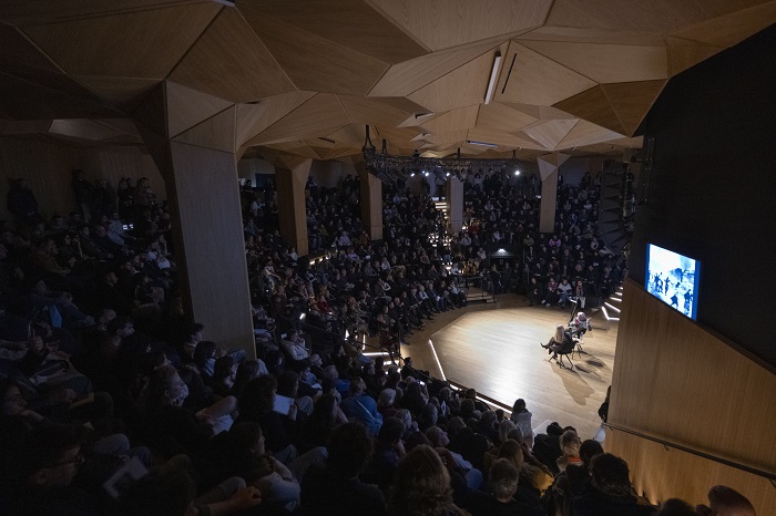 Το κατάμεστο αμφιθέατρο Μιλτιάδης Έβερτ, το Σάββατο, 28 Φεβρουαρίου 2026, κατά την συζήτηση με τον Don McCullin