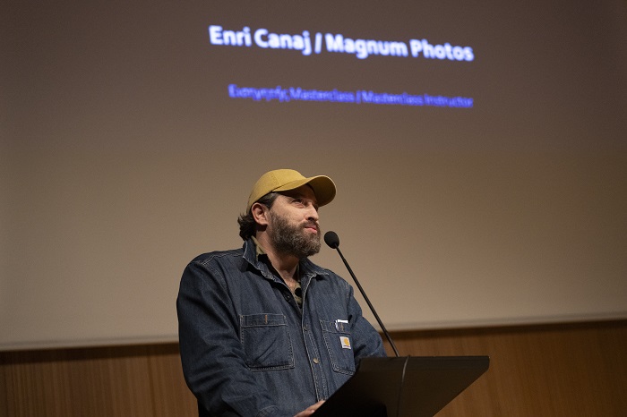 Ο φωτογράφος Enri Canaj, μέλος πια του Magnum photos, ενώ εξηγεί το σκεπτικό και την εμπειρία του πρώτου Masterclass που διοργανώθηκε από το Athens Photo World