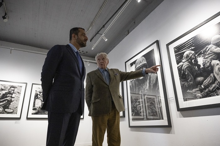 O Sir Don McCullin ξεναγεί τον Σεΐχη του Εμιράτου της Σάρτζα Sultan bin Ahmen al Qasimi στην έκθεση Life, Death and Everything in Between στους Παλιούς Φούρνους της Τεχνόπολης του Δήμου Αθηναίων, το Σάββατο, 28 Φεβρουαρίου 2026