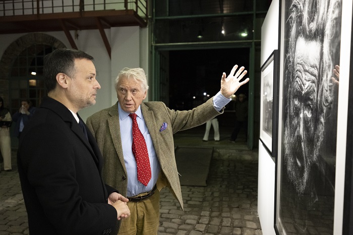 O Sir Don McCullin ξεναγεί τον Δήμαρχο Αθηναίων Χάρη Δούκα στην έκθεση Life, Death and Everything in Between στους Παλιούς Φούρνους της Τεχνόπολης του Δήμου Αθηναίων, το Σάββατο, 28 Φεβρουαρίου 2026