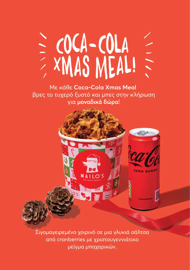 -Παράγγειλε το Coca-Cola Xmas Meal (τη νέα Xmas Pulled Pork ή οποιαδήποτε μακαρονάδα/σαλάτα μαζί με μια παγωμένη Coca-Cola).