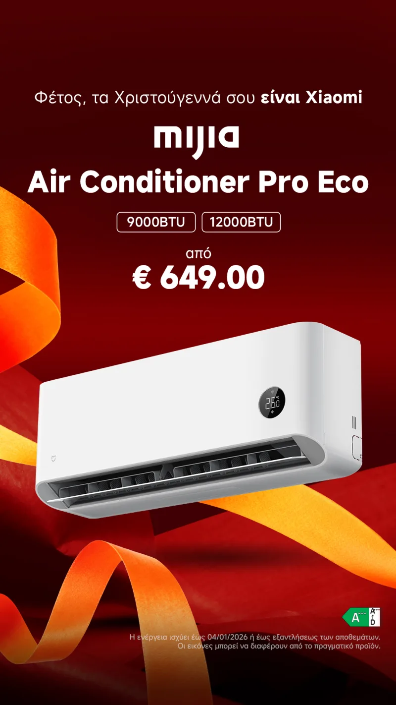 Ξεκινάμε δυναμικά με ένα δώρο που κανονικά δεν περιμένεις να δεις κάτω από το δέντρο, κι όμως, όταν το δεις, καταλαβαίνεις αμέσως ότι μιλάμε για level up. Το Mijia Air Conditioner Pro Eco δεν είναι απλώς ένα κλιματιστικό. Είναι ένα έξυπνο σύστημα άνεσης που λειτουργεί αθόρυβα, οικονομικά και φυσικά απομακρυσμένα μέσω της εφαρμογής Xiaomi Home.